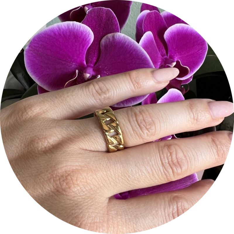 Anello a catena in acciaio inossidabile, versione gold. Regolabile.