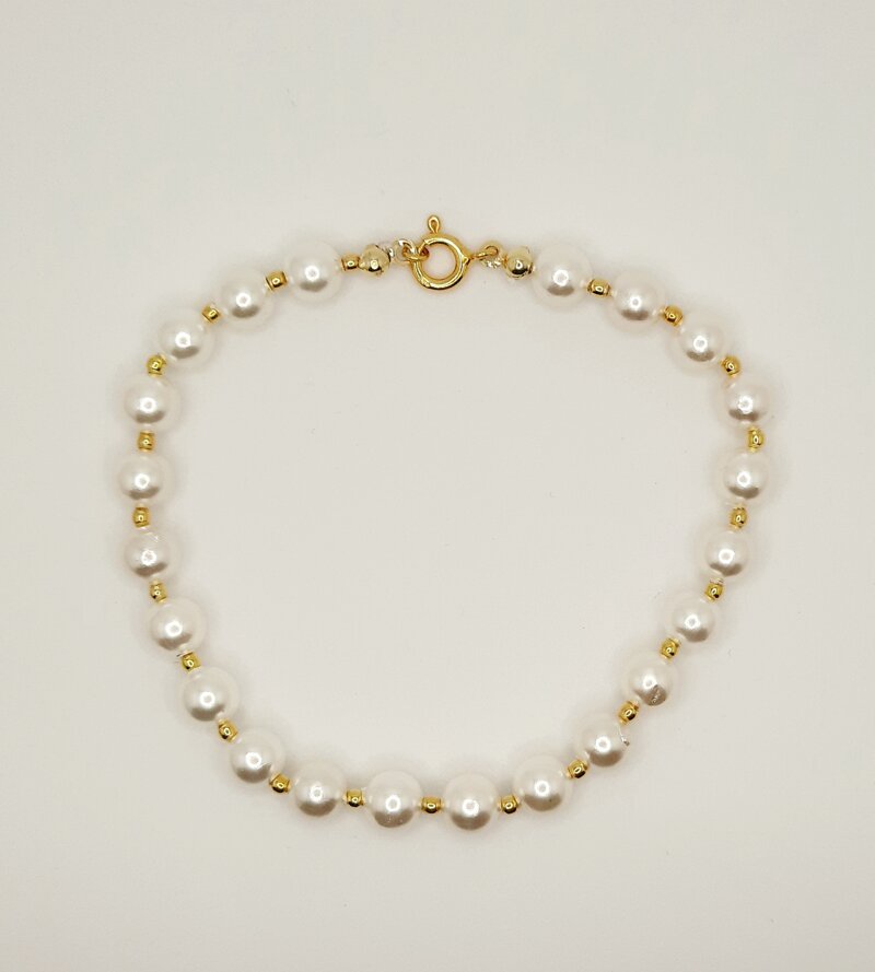 ♡ Bracciale in perla di Maiorca, palline e chiusura a molla in argento 925 placcato oro