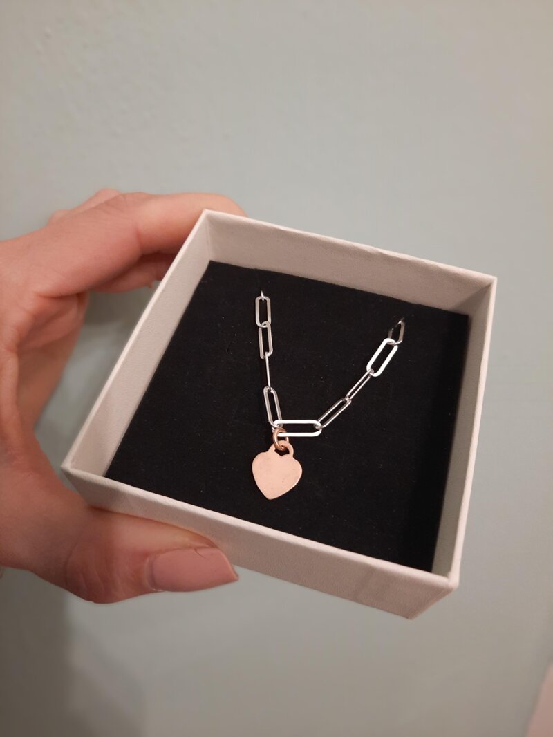 Bracciale catena graffetta in argento 925 con charm cuore placcato oro rosa