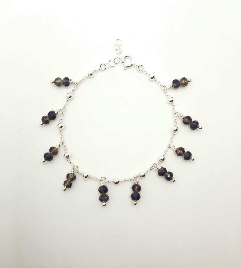 Bracciale catena rolo' con pendenti perline in cristallo