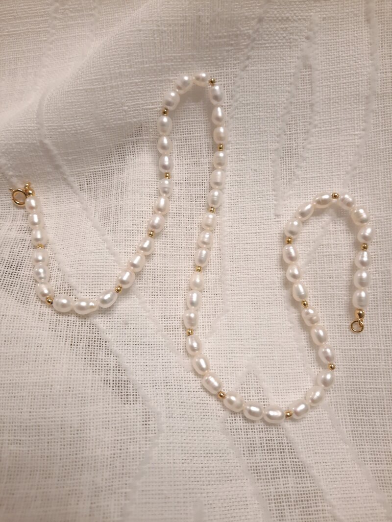 Collana girocollo con perle d'acqua dolce e perline in argento 925