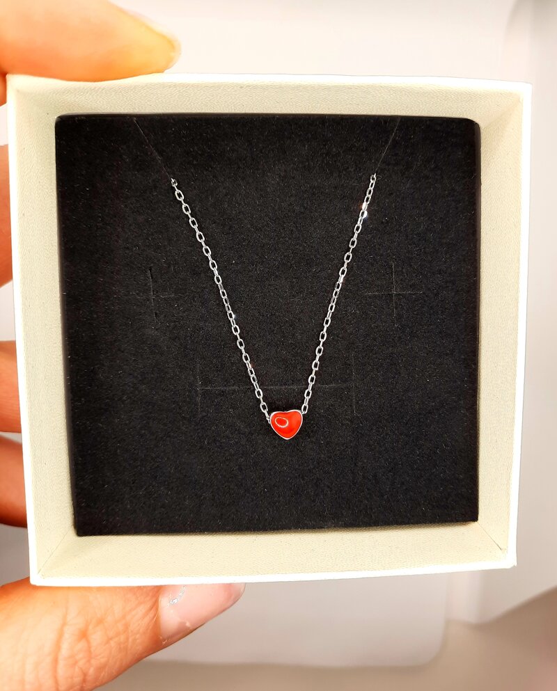 ♡ Materiale: catena argento 925, charm cuore con foro passante smaltato