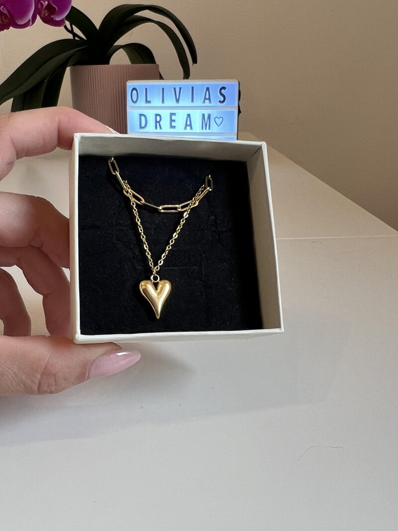 Scopri l'eleganza sofisticata della nostra collana a doppia catena in acciaio dorato. Questo splendido gioiello unisce due delicate catene, arricchite da un pendente a forma di cuore che aggiunge un tocco romantico e moderno. Un accessorio versatile che esalta ogni outfit con la sua raffinata brillantezza.