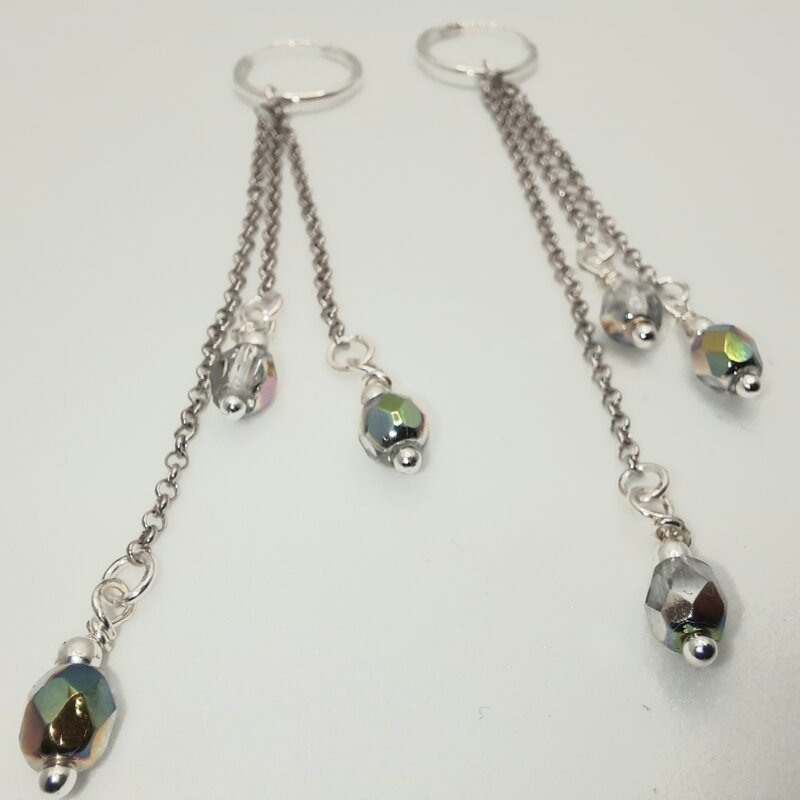♡ Coppia orecchini Mini Hoops con 3 pendenti mezzi cristalli Crystal Vitrail