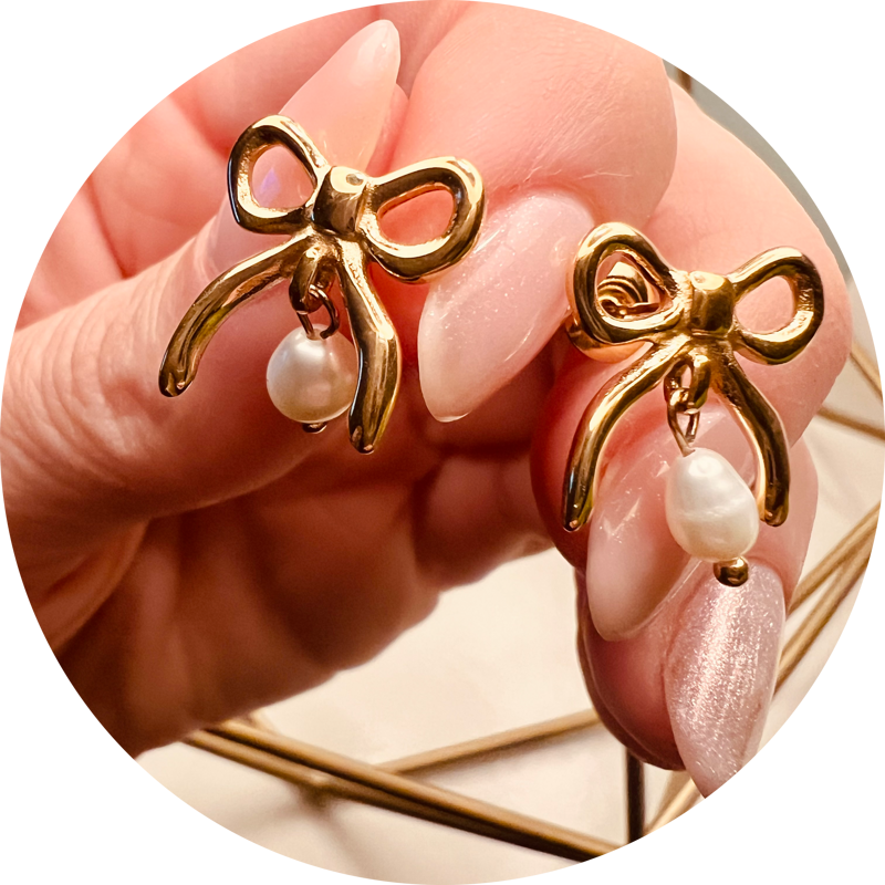 Un tocco di classe e raffinatezza: questi orecchini in tonalità dorata si distinguono per il fiocco elegante, simbolo di femminilità, e la perla pendente che emana un fascino senza tempo. Perfetti per completare un look sofisticato, sono ideali sia per occasioni speciali che per aggiungere un dettaglio chic alla tua quotidianità. Ogni paio è una celebrazione di stile e grazia.