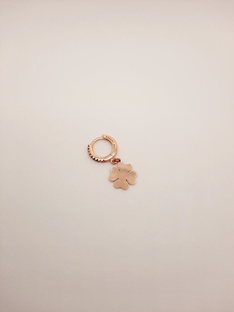 orecchino Huggie con zirconi multicolor e charms quadrifoglio