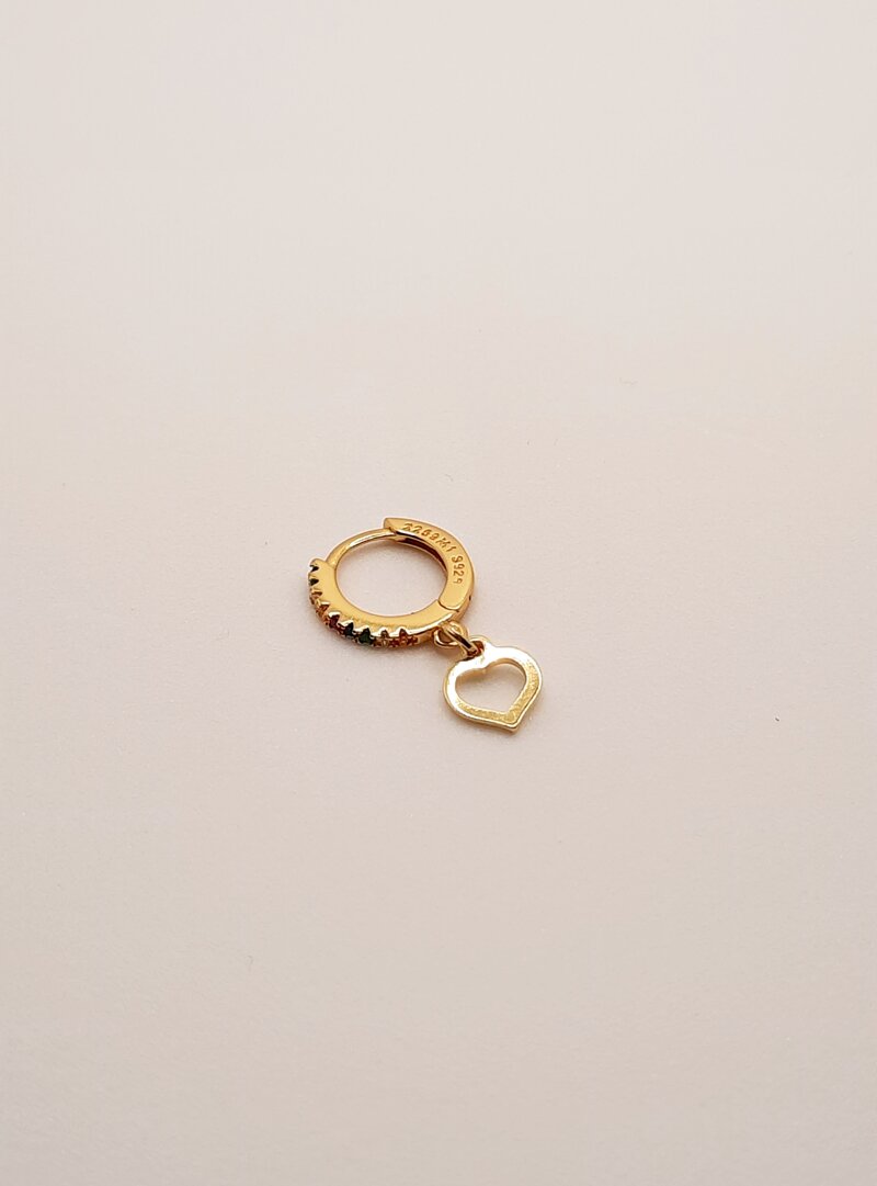 Mono orecchino Huggie con zirconi multicolor e charms cuore