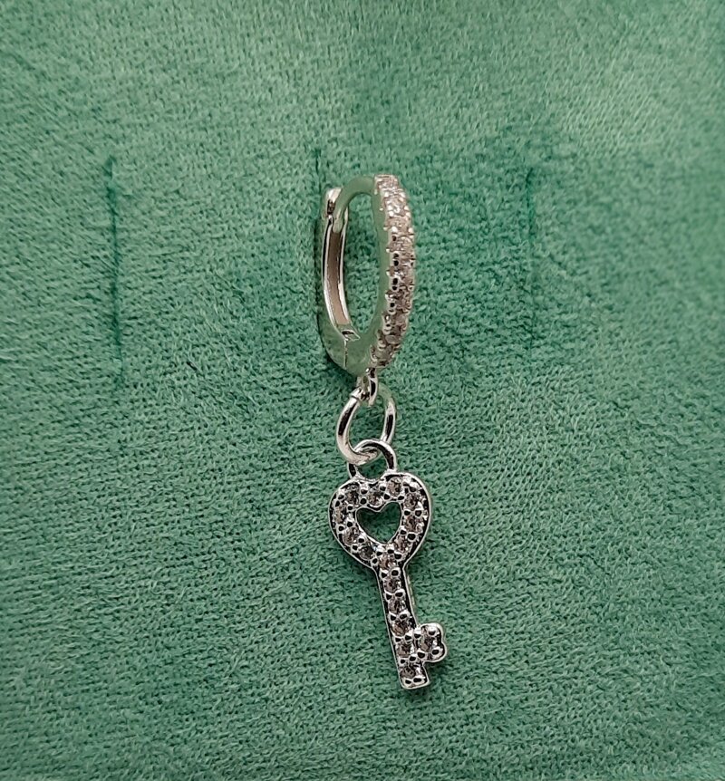 Mono orecchino Huggie con zirconi bianchi e charms chiave con zirconi