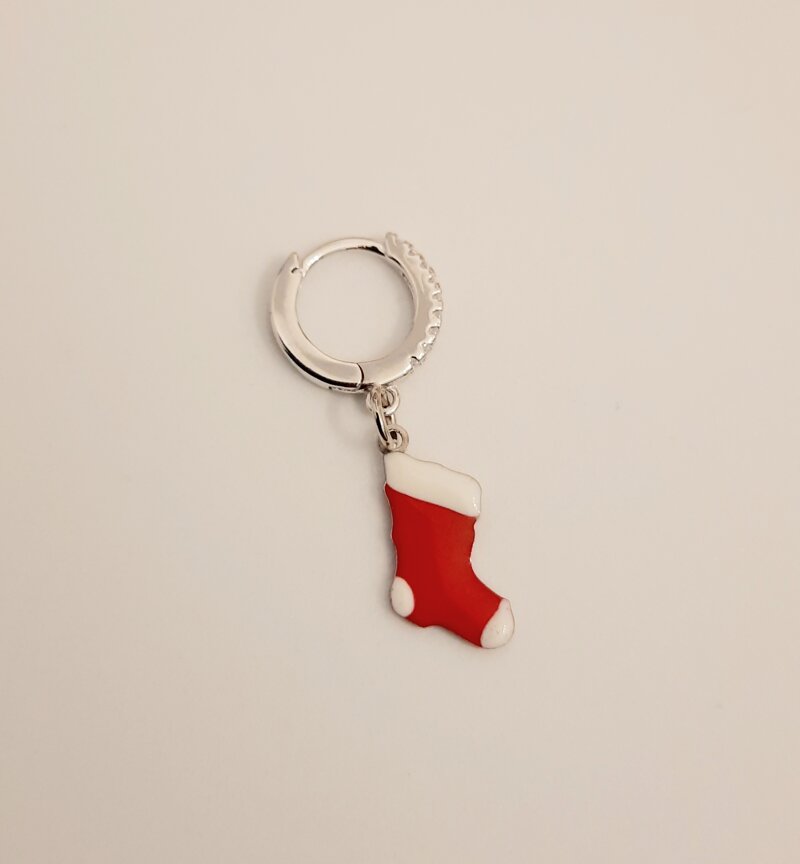 Mono orecchino Huggie con zirconi bianchi e charms calza